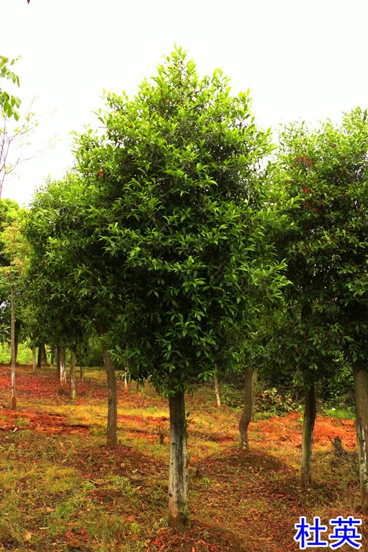 杜英:常绿;树皮灰褐色;叶披针形革质;白色花;行道树